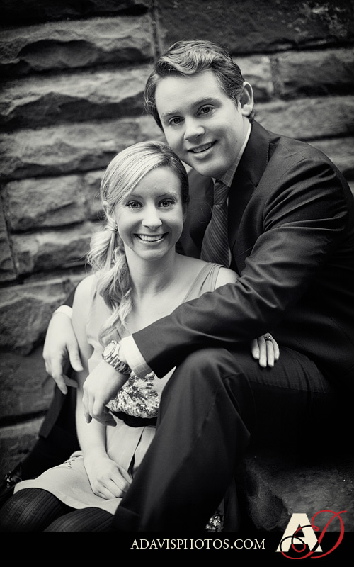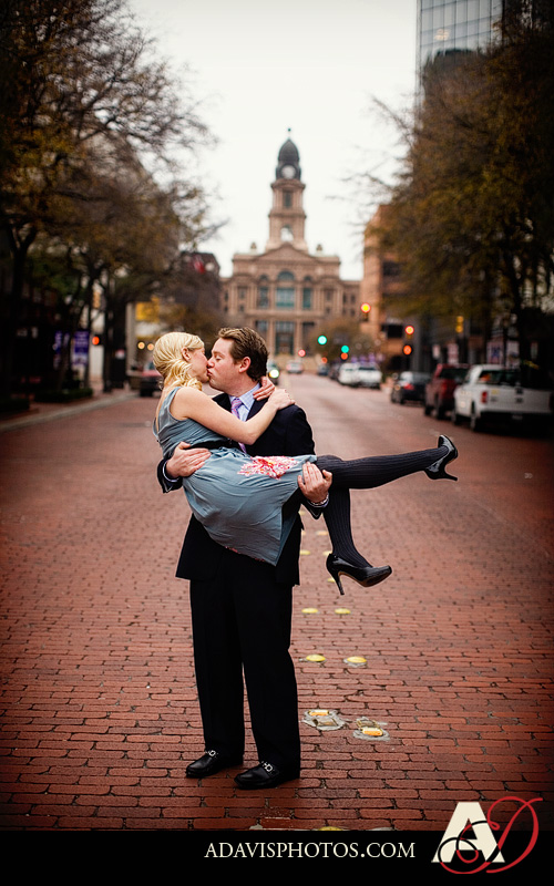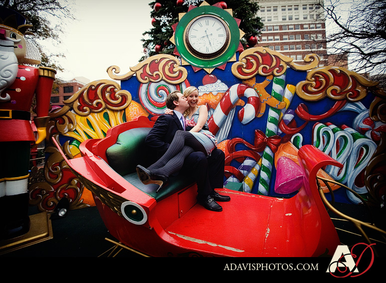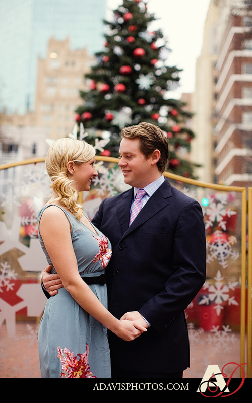Meet Holly & Kent! They’re recently engaged and they’re planning a winter wedding. So in December they wanted to take some of their engagement portraits with some festive holiday backdrops. There was a cute area in downtown Fort Worth that we stopped at first. 🙂 Holly was a bridesmaid in Sarah & Garrett’s Wedding and now I’m super excited to be their wedding photographer.