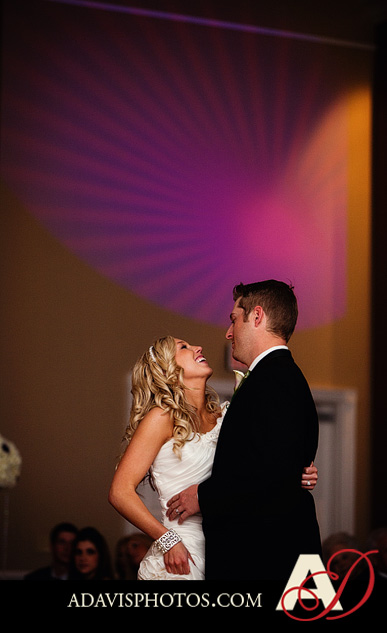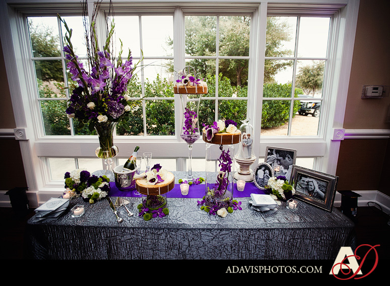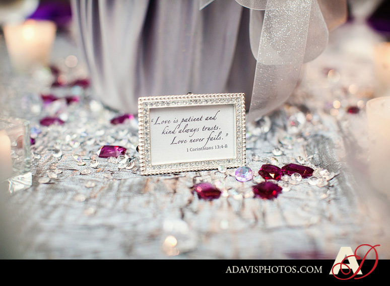 After their wedding ceremony at The Piazza in the Village, Kaci & Cody drove just minutes away to the Colleyville Center for their wedding reception. Their guests were enjoying a cocktail hour in the lobby of the Colleyville Center. Kristen at Shenanigans Weddings & Events did a beautiful job on the decor of their wedding reception. The purple accents throughout the space were just so lovely. Their DJ Randy Ro played a great mix of dinner and dancing music that energized the guests to enjoy the party on the dance floor. I hope you enjoy viewing their wedding reception photos from the Colleyville Center.