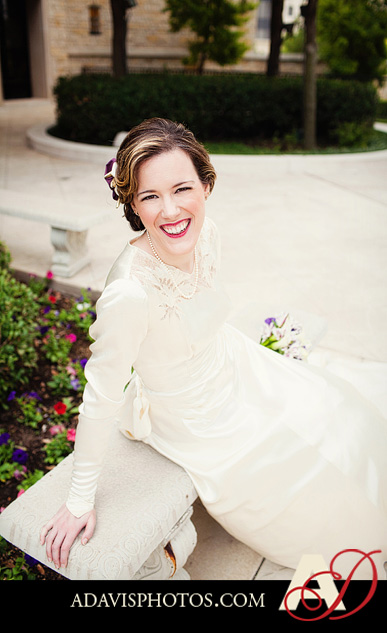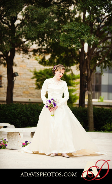 Jenny and Chad were married this past Saturday at the Westin Stonebriar Hotel in Frisco. She grew up in Plano and we actually went to Plano West and graduated the same year. But sadly, it’s such a big school that we didn’t remember each other from high school. It was great to get to know her while planning her wedding and then being there to capture all of the fun and sweet moments and people in her life on her wedding day. Jenny lives in Massachusetts, so we had a tight window in which to photograph her bridal portraits. I’m so glad we made it work. Thanks to Angie Williams of Angie Willams Wedding Hair & Makeup for working with us to do a morning bridal session. Angie did an amazing job styling Jenny for her bridal portraits. Jenny chose to wear the same wedding dress that her grandmother and mother wore. It’s a family heirloom and so sweet that the ladies in her family have all been married wearing the same wedding dress. I hope you enjoy Jenny’s bridal portraits from the Westin Stonebriar Hotel. 🙂