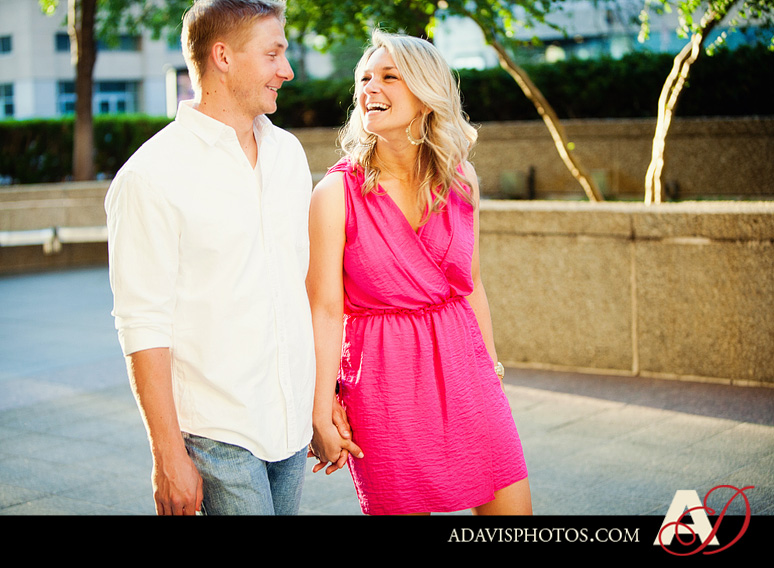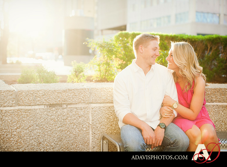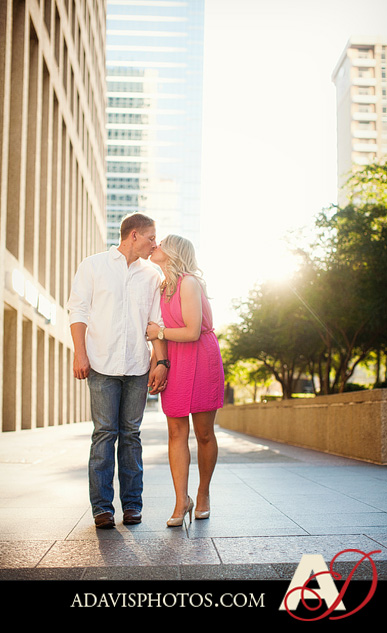 Meet Mandy & Alex. They’re getting married in June! Mandy and Kadie are great friends and I was so excited to hear that Mandy wanted to meet with me about wedding photography too! We met for breakfast at Corner Bakery and now I’m just overjoyed to be a part of their wedding celebration. We photographed their engagement portraits along Turtle Creek Park in Highland Park and then went to Downtown Dallas for a more urban setting for their portraits. They’re having their wedding reception at the Bank of America Building in downtown Dallas, so it was a great second location for their engagement portraits. I hope you enjoy these! 🙂
