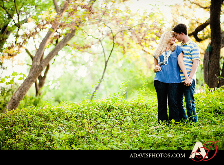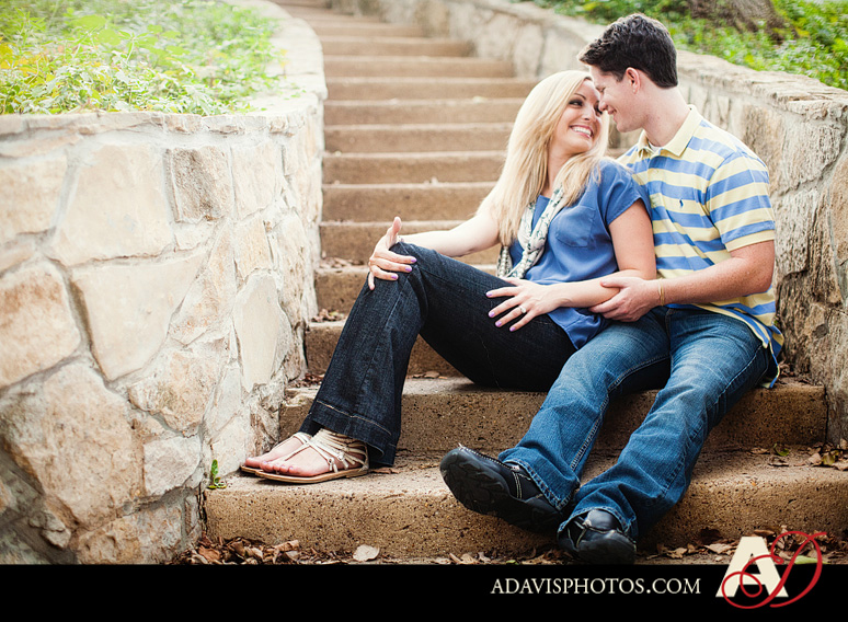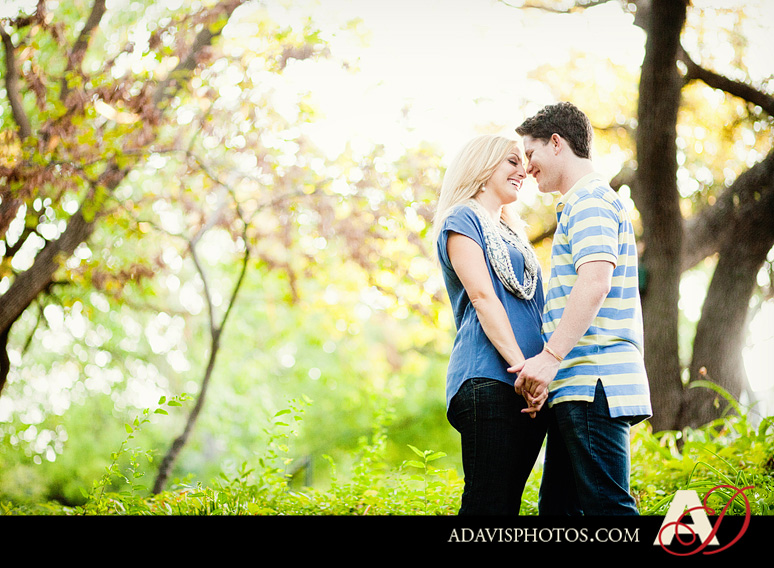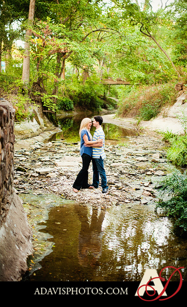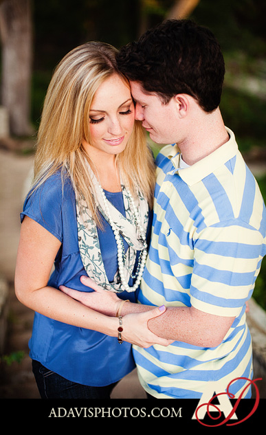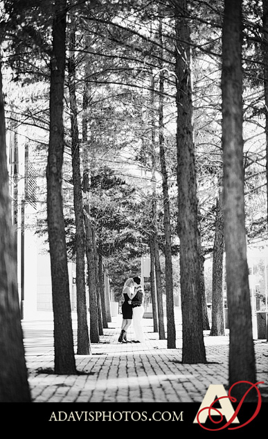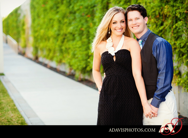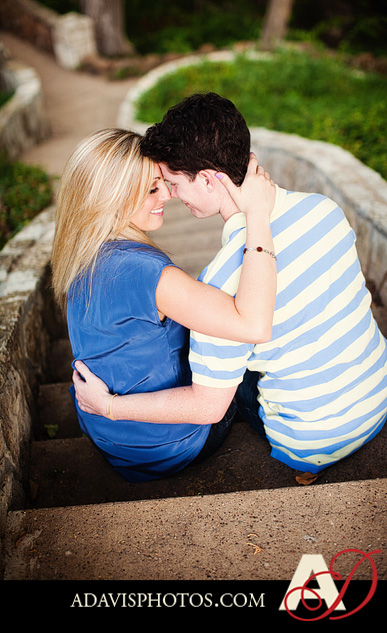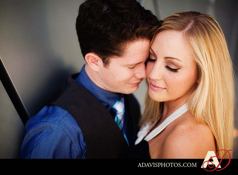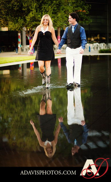 Meet Alyssa & Tyler! They’re getting married in January at The Height’s Baptist Church, followed by a wedding reception at the Hickory Street Annex, a cool urban loft wedding venue in downtown Dallas. Alyssa & Tyler have so much sweet natural chemistry and they love to have fun and laugh together. We had an amazing time photographing their engagement portraits in the Dallas Arts District (near The Winspear & The Meyerson) and along an area of Turtle Creek Park. Tyler is an artist and Alyssa is an actress, so the fun and colorful engagement locations really brought out their personalities and spurred on our creativity. I hope you enjoy viewing their engagement portraits! 🙂