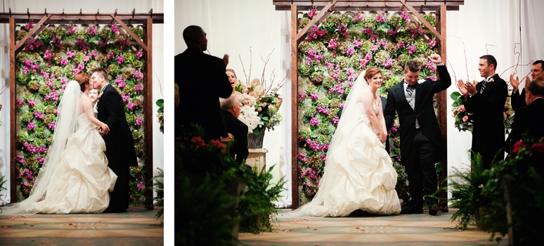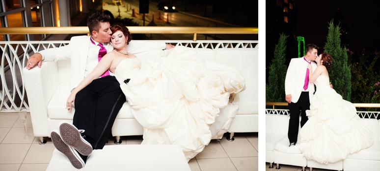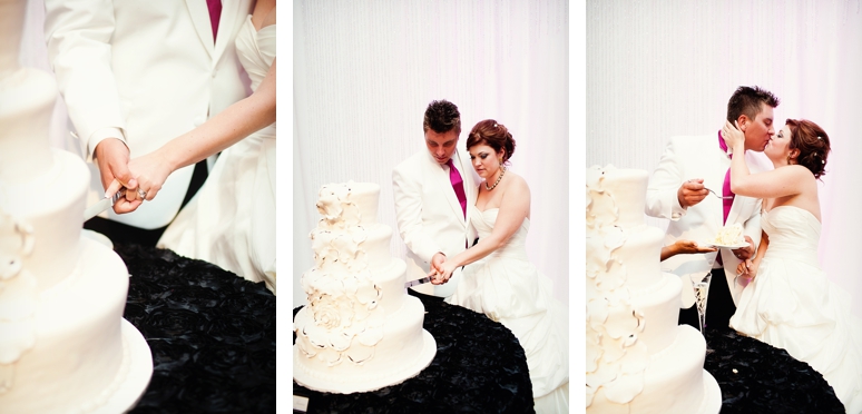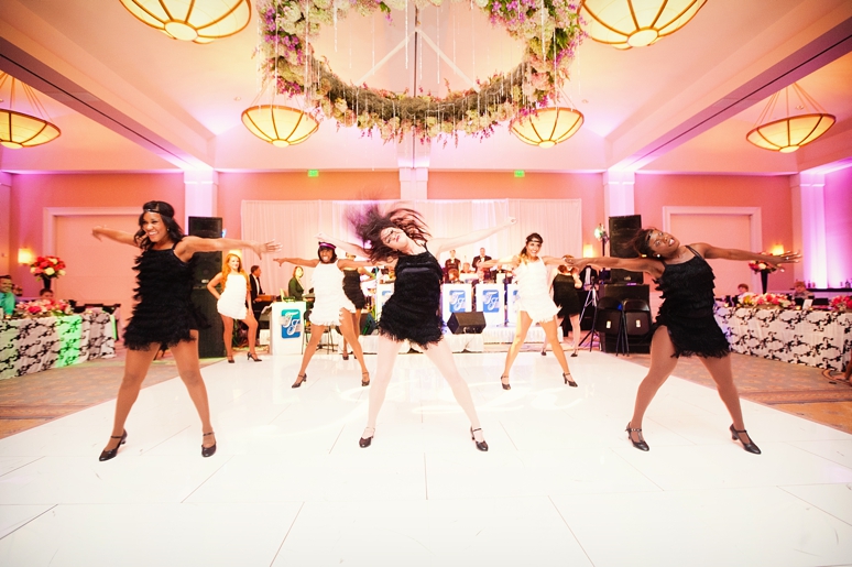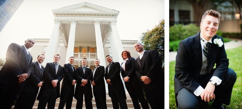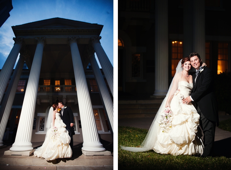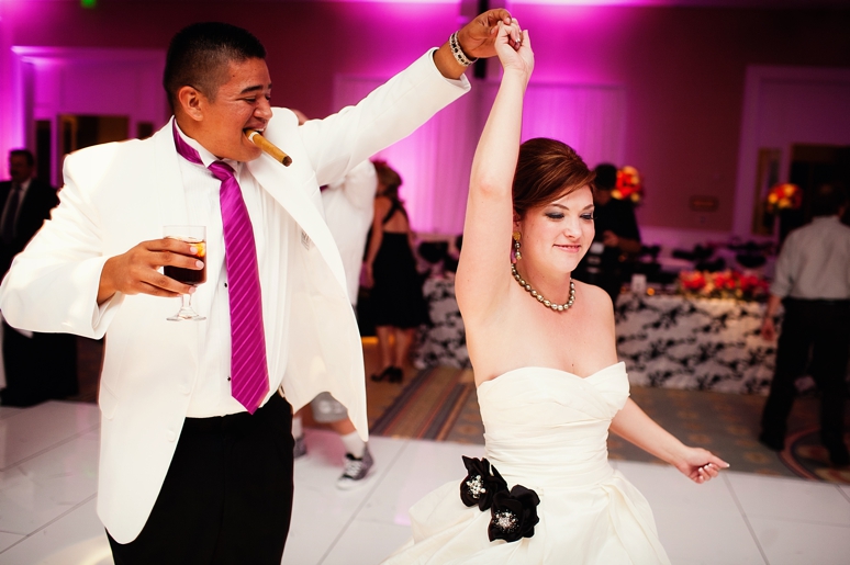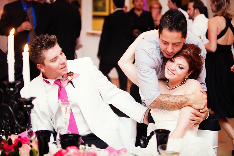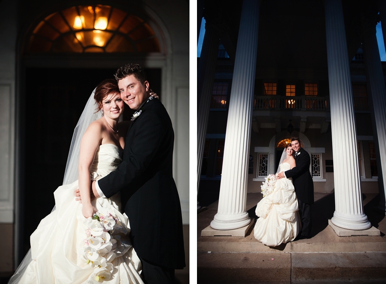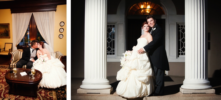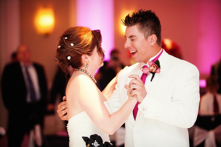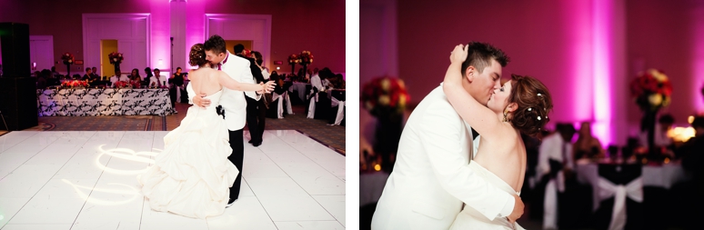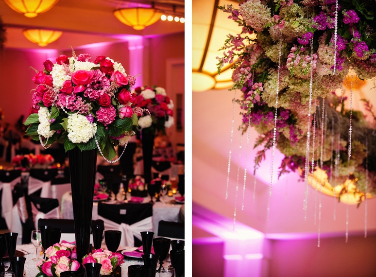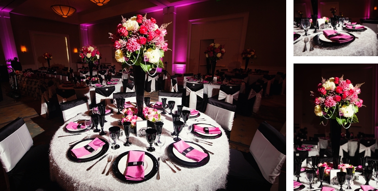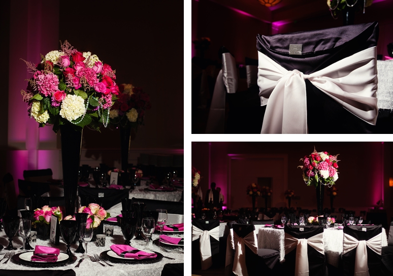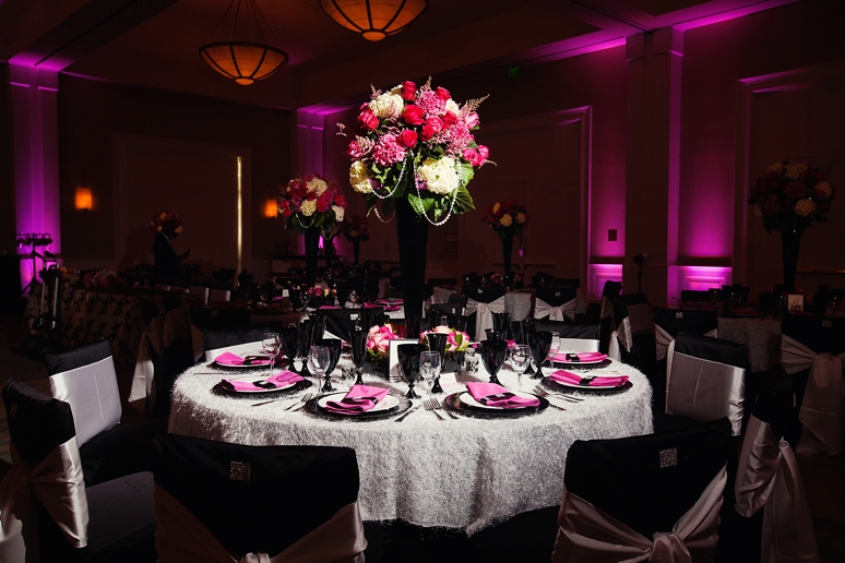 Jessica & Ryan were married in October at the Historic and Beautiful Belo Mansion in Downtown Dallas. It was a beautiful affair. The wedding ceremony conducted by their friend was held in the East & West Pavilion in the Belo Mansion. The reception was held in the historic part of the house known as the Haynes & Boom Ballroom & the Hughes & Luce ballroom. The ballrooms were decorated lavishly with hot pink and black and white accents along with beautiful floral design. The crowning beauty was the floral and crystal chandelier hung above the wedding reception dance floor. Lighting was designed by Beyond. They also had a fabulous pink and white desert table and cigar girls passing out cigars for favors for their guests. The couple had the amazing Tuxedo Junction Band perform throughout the evening. The best memory I have from their wedding day was that Jessica & Ryan were side by side the entire night while they celebrated. I hope you enjoy viewing their wedding day at the Belo Mansion.