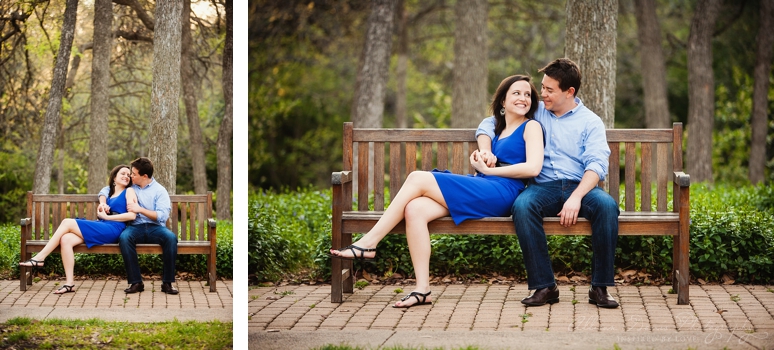 Meet Rebecca & Victor. They’re getting married at the end of this month at the Texas Discovery Gardens with an outdoor garden wedding ceremony. They met through friends at church and their friendship grew into great love for each other. They’re a sweet and fun couple and I look forward to celebrating their wedding day soon! We photographed their engagement portraits at the lovely Lakeside Park in Highland Park. It’s definitely spring and the parks and gardens are all turning green again. I hope you love viewing their mini engagement portrait session.