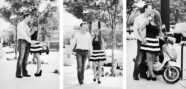 Meet Vanessa & Andy! They’re getting married in July at the Westin Galleria in Dallas. Vanessa & I actually graduated from Plano West Senior High School the same year and this year we’re coming up on our 10 year reunion – crazy!?!. She and Andy have been together for 9 years and I’m so excited to celebrate their marriage in July! 🙂 They have such a sweet chemistry together and I loved seeing them be so affectionate and loving towards one another. As they were walking together hand-in-hand down the street a man in his car commented (seemingly to himself) about what a beautiful and in love couple these two were. It was so funny and sweet to hear someone make that comment about these them as we were photographing their engagement portraits. We started our session at the West Village and even stops for drinks and chips and salsa at the Taco Diner. After our urban backdrop, we went to the beautiful White Rock Lake for the second part of their engagement portraits. We were blessed with beautiful light for their portraits and I am so excited to share these with you all! To see more, check out their engagement portrait slideshow.