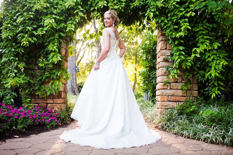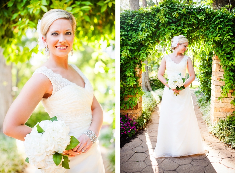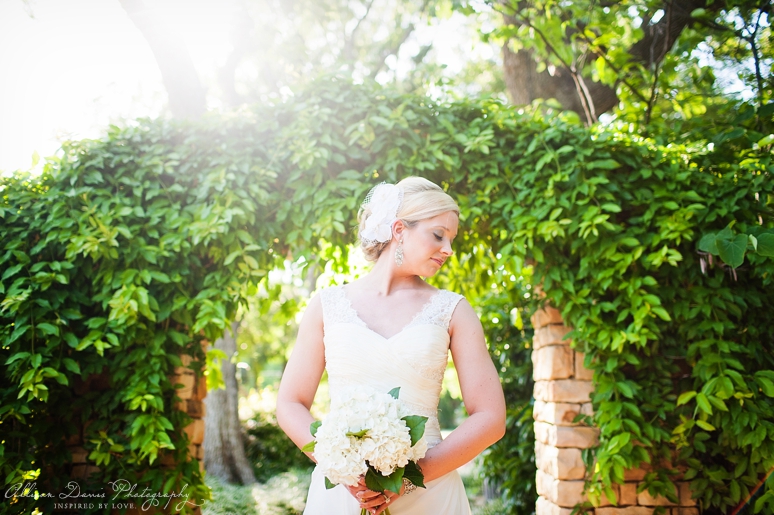Mandy was married last weekend at the Hackberry Country Club in Las Colinas. She is such a lovely bride and a fun lady. Her wedding was beautiful and I can’t wait to share those images with you soon.We photographed her bridal portraits at the Grapevine Botanical Gardens – it’s a cute little public area with large trees and we had some beautiful light for her bridals. She wore a bridal gown from St. Patrick’s and Chi Ro Makeup did her lovely styling. I hope you enjoy viewing Mandy’s bridal portraits.