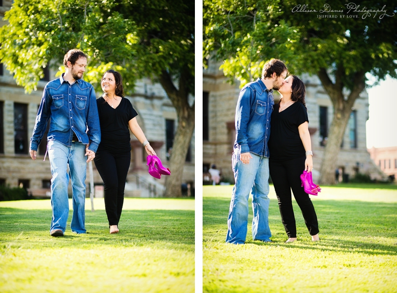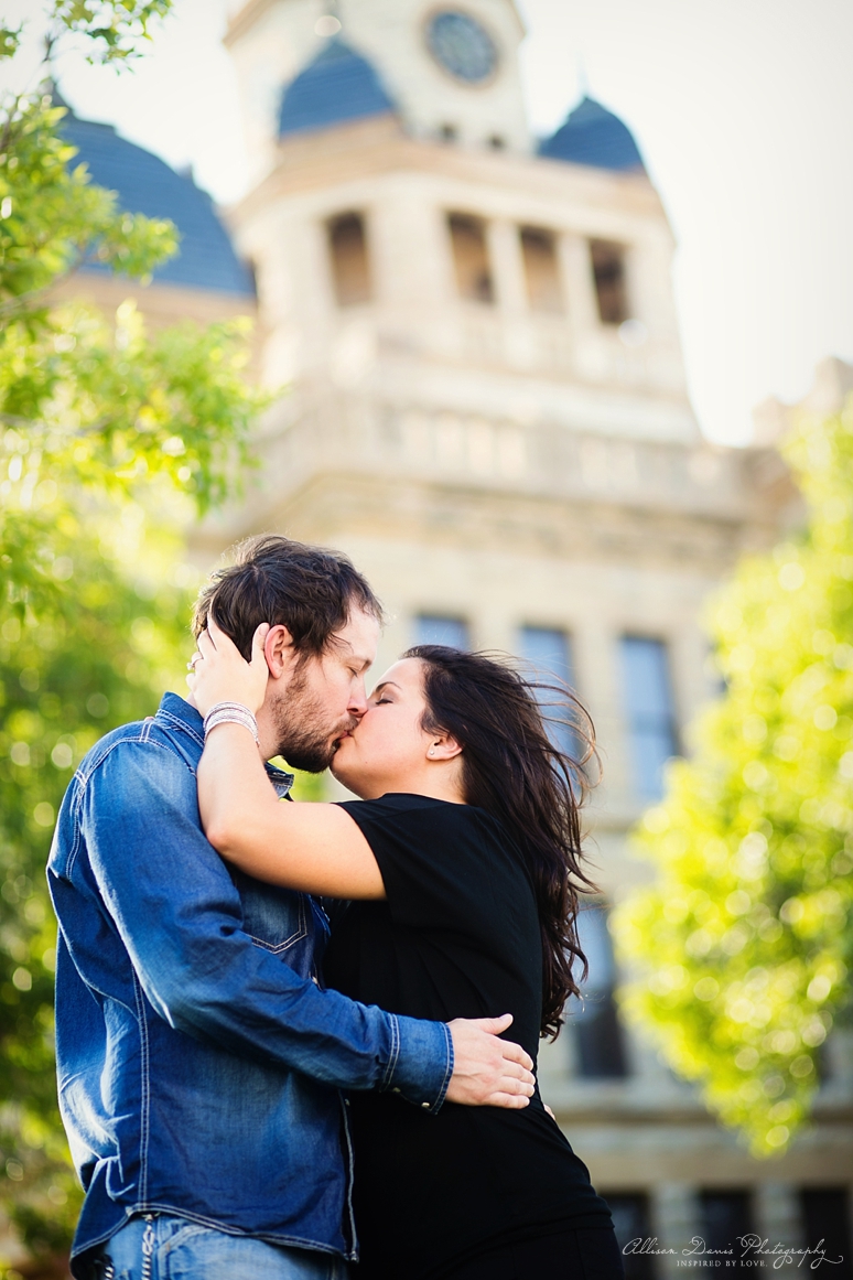Kelly & Clay are getting married in a couple of weeks at the Fort Worth Botanical Gardens Japanese Gardens. I had a great time photographing them on the Downtown Denton Square and then out in a field in Prosper. I loved how relaxed and comfortable they are together. We were blessed with a beautiful day and lovely sunlight. I hope you enjoy viewing their engagement portraits.