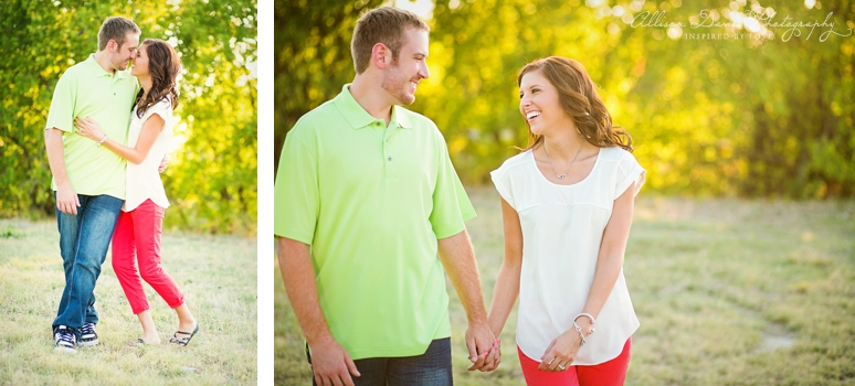 Meet Haley & Austin. They’re getting married in April at Paradise Cove at Lake Grapevine. They’ve been together for about 4 years and I’m excited to celebrate their marriage with them. They are very sweet together and I loved all of the funny and playful moments during our shoot. We photographed their engagement portraits in downtown Prosper and out in a field down a gravel road. I love shooting in Prosper because there are so many little areas with character and I love the wide open spaces. I hope you enjoy viewing their fun engagement portraits!