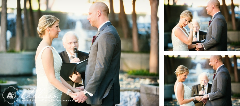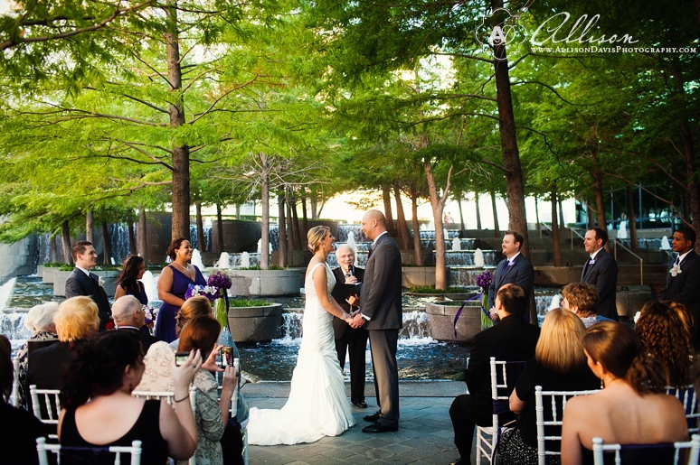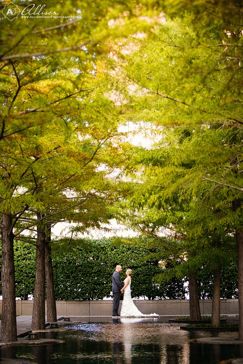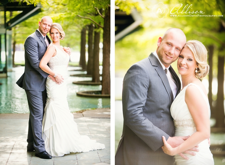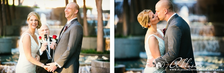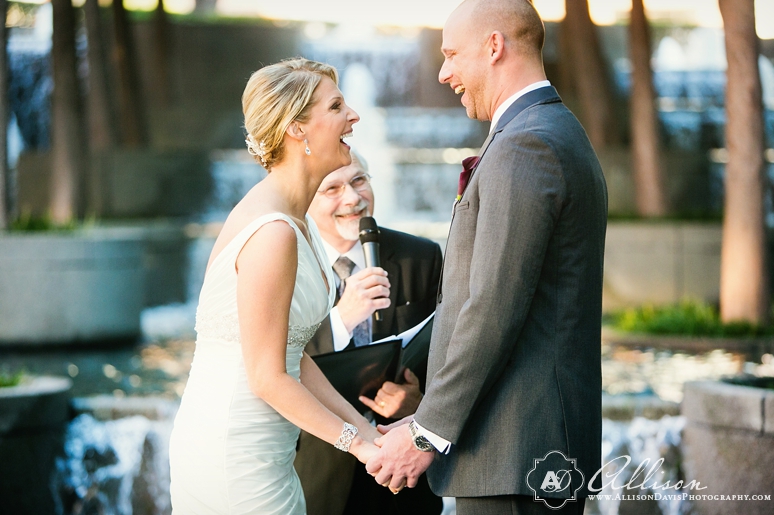 Stephanie & Rob were married in October at the beautiful and fabulous Avanti Fountain Place in downtown Dallas. It’s one of my new favorite wedding venues in Dallas! And it was even better because it was a wedding with one of my favorite and coolest couples of the year. They are so fun, so laid back and just seem to be a great team together! It was a pleasure to be a part of their celebration. They got ready for their wedding at the Fairmont Hotel and walked to the nearby Avanti Fountain Place. They chose to do a First Look before the wedding and I just can’t tell you how excited I was to photograph this amazing couple together – and dang, Stephanie looked amazing! Their ceremony was by the fountains and they had a lovely cocktail hour outdoors after the ceremony. Stephanie & Rob selected a fabulous menu for their guests and then it was a major dance party! Great people – great celebration. I hope you love their wedding photographs.