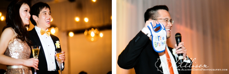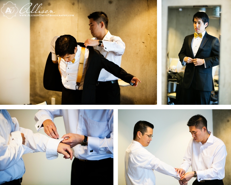 Diana & Wei were married at their home church at Dallas Chinese Fellowship Church in Plano followed by their wedding reception at the NYLO Hotel in Las Colinas. I loved Diana’s wedding dress — her mom picked it out and she looked stunning in it & I loved Wei’s wedding day style with his suspenders and bow tie. They are such a sweet couple and their wedding day was full of great moments: I loved their first look and the fun bride and groom portraits we took at the NYLO; their wedding ceremony was beautiful and I loved hearing them read their handwritten vows to one another; I loved their first dance and the photo Aaron took when Wei dipped his bride at the end of the dance; and the toasts given were sweet and heartfelt. I hope you enjoy these photos that show all of these fun moments documented.