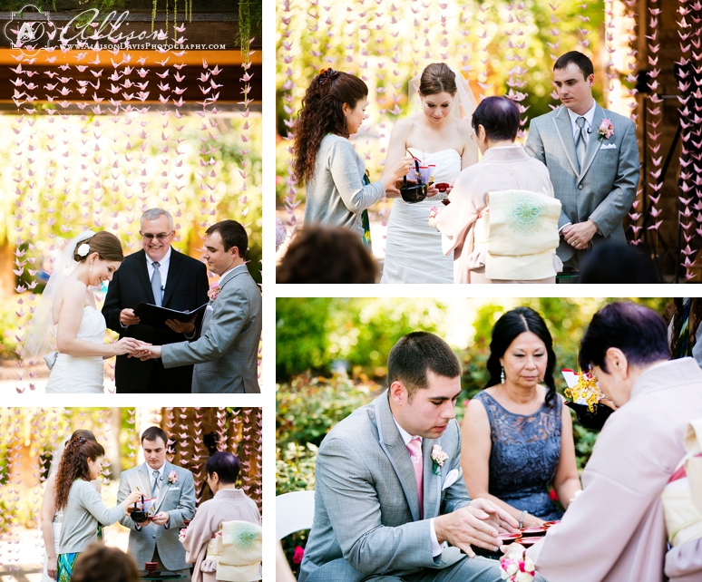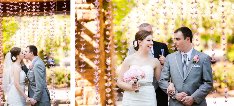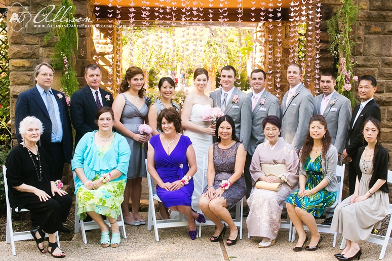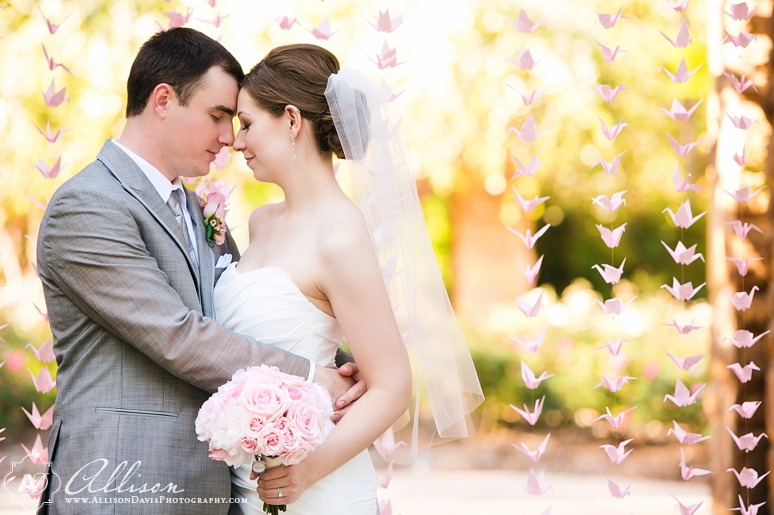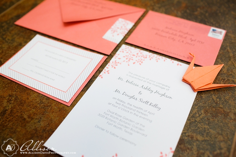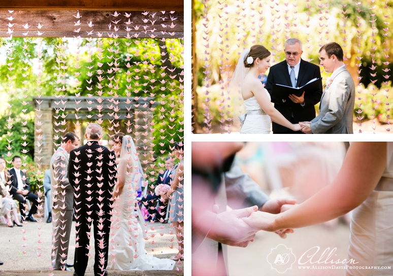 Melissa & Scott were married in a sweet and beautiful wedding at the Fort Worth Botanical Rose Garden with their nearest and dearest present. Melissa designed and coordinated the most perfect intimate wedding day with the help of Kristen & Deana of Shenanigans Weddings & Events. She folded and created the paper crane background of her wedding ceremony at the Rose Garden and had tons of other sweet personal touches to thank all of her guests for coming to celebrate their wedding day. I loved Melissa’s wedding day style, Scott’s awesome cufflinks, the ceremony gift bags, their personally written vows for one another, the Tea ceremony to incorporate Melissa’s Japanese heritage, their intimate dinner reception at Del Frisco’s and their genuine love and excitement to be husband and wife. In all honesty, Melissa & Scott’s wedding is my dream wedding! If I were getting married again, this is exactly what I would want to do and I love and appreciate that Melissa & Scott decided to have such a sweet and intimate wedding.