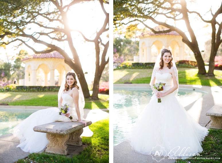 Amanda & Justin were married today at East Dallas Christian Church followed by a wedding reception at The Texas Discovery Gardens. They had the most beautiful wedding day. Amanda was just stunning! She had her hair and makeup done by the lovely Angie Williams of AW Wedding Hair & Make up. And her bridal portraits were really special. We photographed them in the some of the same places her mom had her bridal portraits taken and we did some photos to recreate the same poses and locations like her mom’s portraits. I think you’ll love Amanda’s gorgeous wedding gown. She just floated in it. Anyways, I hope you enjoy this Dallas Bride’s portraits at Lakeside Park & Versailles Park in Highland Park.