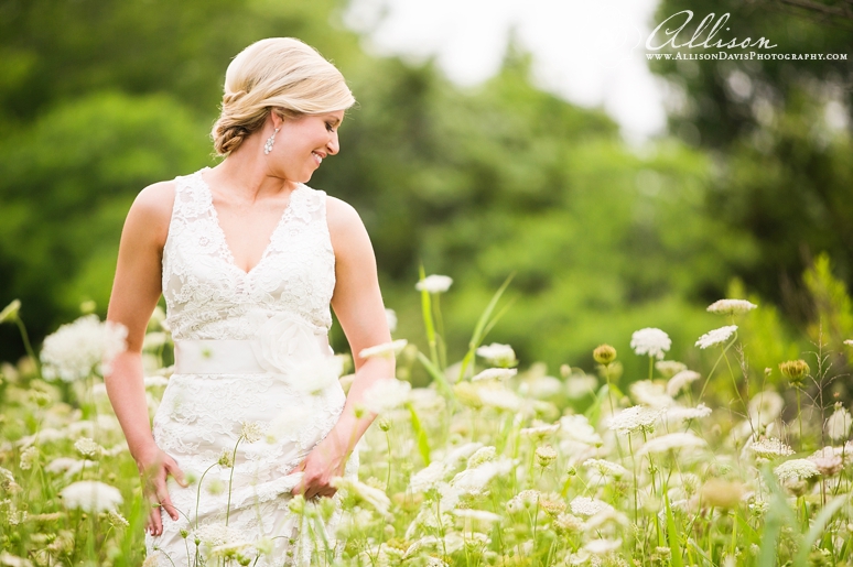 Rachel & Kevin are married! They got married and had their wedding reception at the Room on Main. Angie Williams of AW Wedding Hair & Makeup styled the lovely Rachel for hair and makeup. Now I can finally share her beautiful wild flower bridal portrait session we photographed at White Rock Lake near the Filter Building. I loved Rachel’s lace wedding gown. It is simply stunning on her. We lucked out and were able to photograph her in the beautiful wild flowers around White Rock Lake before the summer heat melted them away. I really hope you enjoy viewing these Dallas bridal portraits!