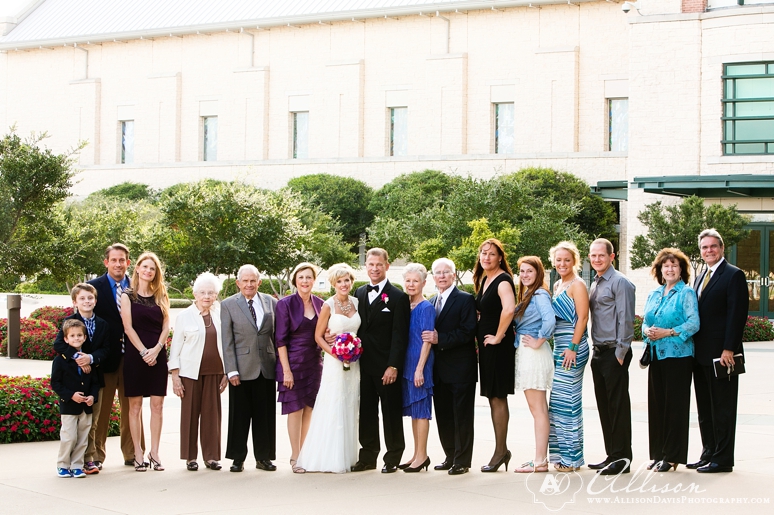 Tamara & Kyle were married last month at Prestonwood Baptist Church. They had a beautiful and intimate wedding with their families in attendance. I posted one photo of all of the guests in attendance and it’s one of my favorite images of the day because of the importance of each person who witnessed the marriage of this sweet couple. Tamara & Kyle chose to do a first look and so we were able to take a ton of great portraits before their ceremony. They had their wedding ceremony in the Prayer Suite at Prestonwood. Afterwards we stopped for just a few more photos at a Park near Willow Bend to catch some golden sunlight. Then everyone drove to Steve Fields for an intimate dinner reception which was filled with great family stories and fun conversation. I hope you enjoy this intimate wedding!