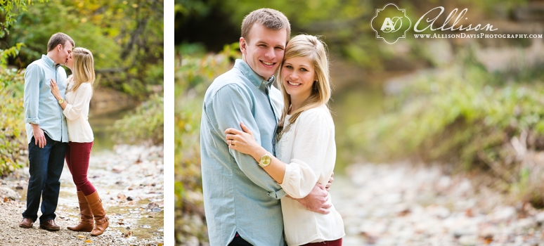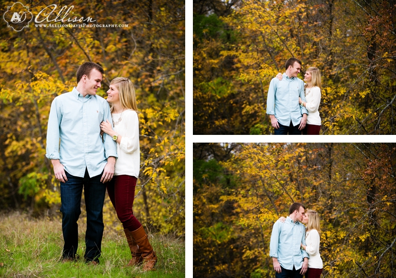 Meet Sarah & Scott. They’re getting married in April at Ashton Gardens. Sarah & Scott met in kindergarten and she use to chase Scott around the playground to pin him down and kiss him. She moved away in third grade, but they later reconnected in college through an old friend. They dated for 4 years and in June, Scott proposed to Sarah at Lakeside Park in a super-cute and romantic way: Sarah’s sisters created some signs to document their relationship together and at the end of their trip down memory lane, Scott proposed. He pulled some of her friends and family on the surprise and threw a celebration afterwards to surprise her. We photographed their engagement portraits at Arbor Hills Nature Preserve. It’s the best forest area in Dallas for fall portraits. I love the rich and warm fall leaves throughout the park. I hope you enjoy viewing their sweet engagement portraits!