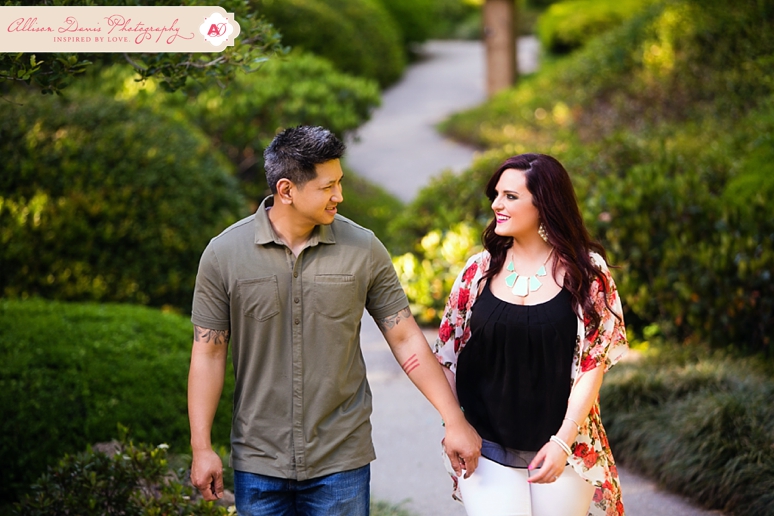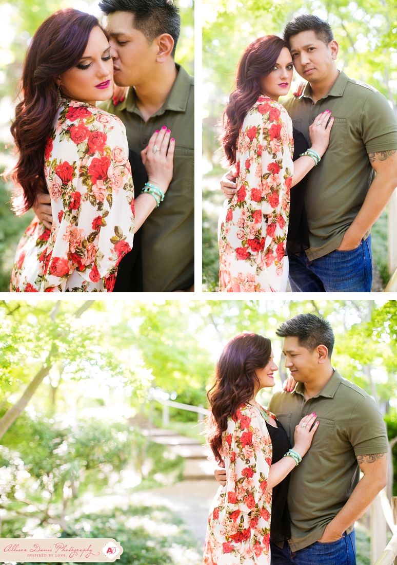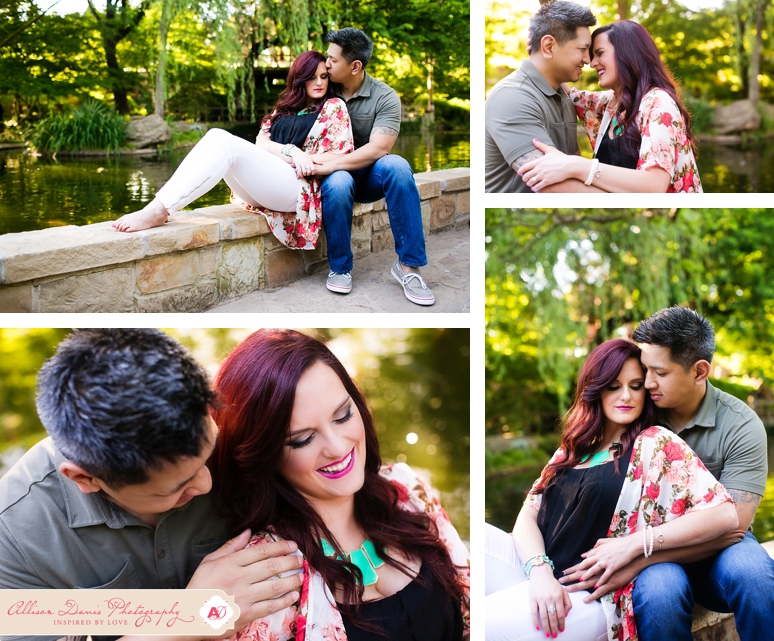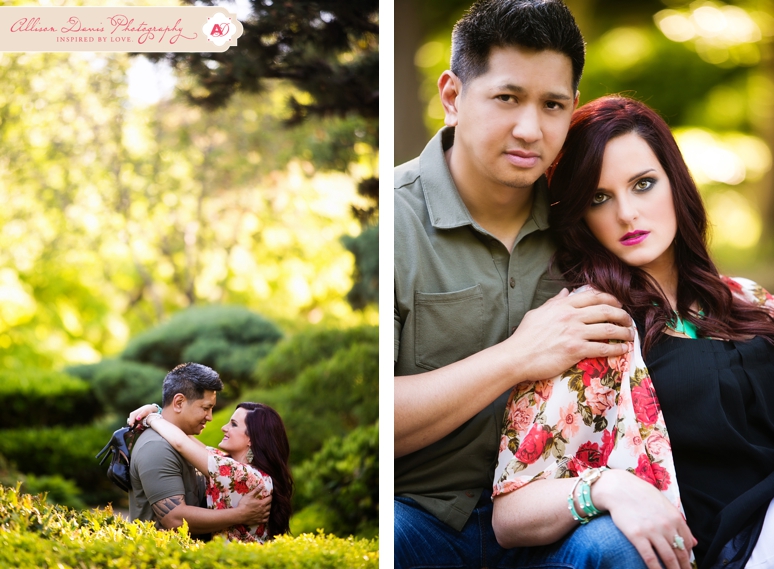 Jenny & Robert are getting married in November at the YWCA in downtown Fort Worth. They’ve been together for many years and now they’re making everything super-mega-official! We photographed their romantic and sweet engagement portraits at the lush and beautiful Japanese Gardens at the Fort Worth Botanical Gardens. They have a kind, tenderness together and I’m grateful to document them and their love and connection together. I hope you enjoy their romantic engagement portraits.