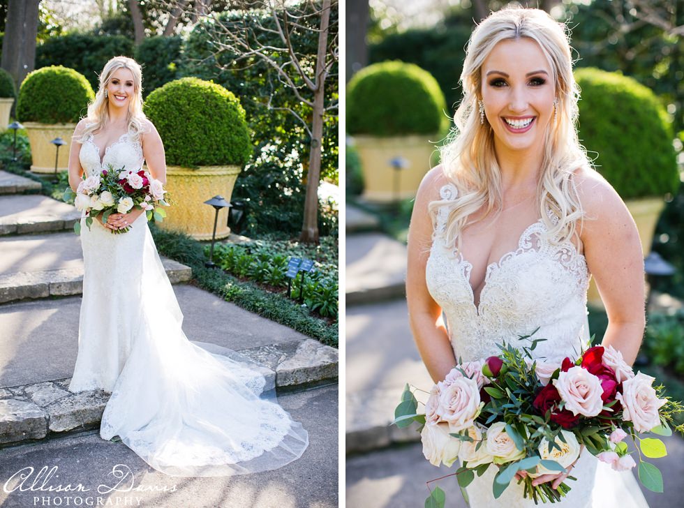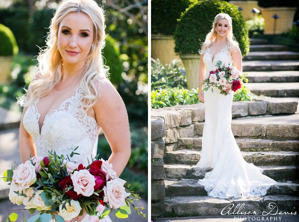 Spring at the Dallas Arboretum is so full of life and beautiful blooms. I photographed Taylor’s bridal portrait session throughout the beautiful gardens and to say I’m in love with these portraits would be an understatement. Taylor is a lovely woman and has been a joy to spend time with throughout her engagement and her wedding, which was this past weekend at the Hidden Creek Event Center. Stephanie Nelson outdid herself by styling Taylor for her hair and make up and Lizzie Bee’s Floral created a lovely bridal bouquet for her session.