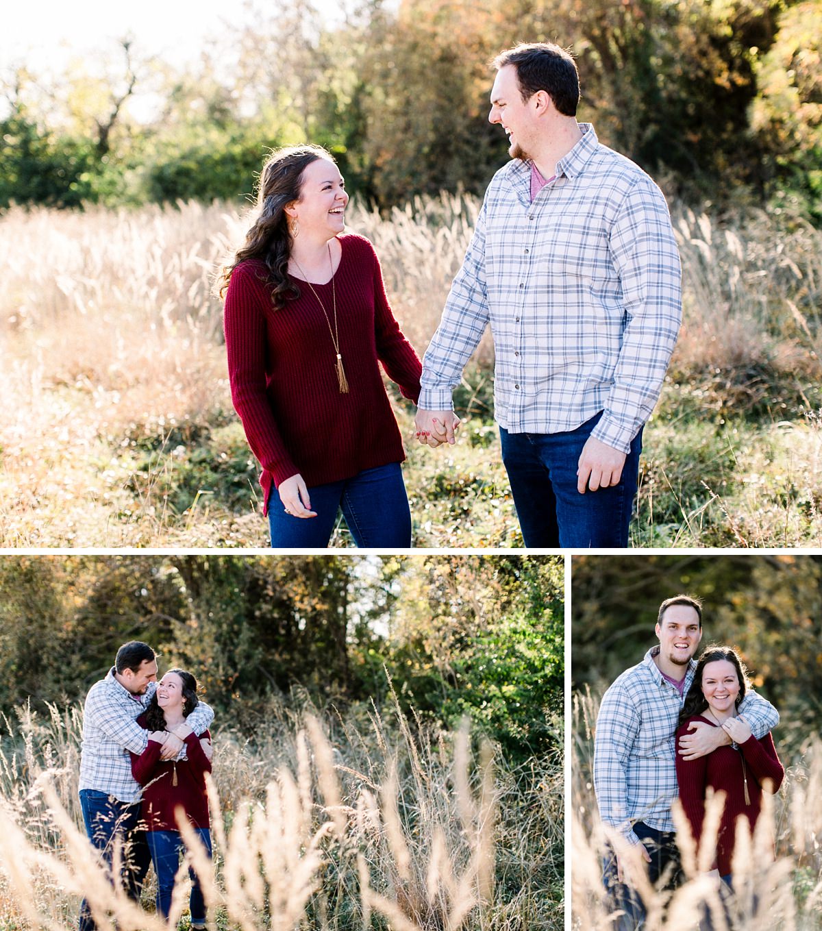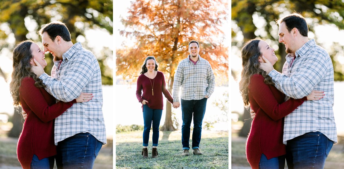 Kellie & Aaron are getting hitched! They became friends while attending Baylor University and after college, they began talking and have become more than friends as they started dating long distance. They’re giggly, sweet, like-minded, fun-loving and are overjoyed to experience life together from here on out. I photographed Aaron’s sister’s wedding in 2013, so I am stoked to photograph another family wedding. We photographed their fall engagement portraits at White Rock Lake in a couple of different spots around the lake. I’m in LOVE with so many of these because I feel like I captured their connection genuinely and that’s the spirit of what I want to do. I hope you enjoy some of my favorites from their engagement pictures.