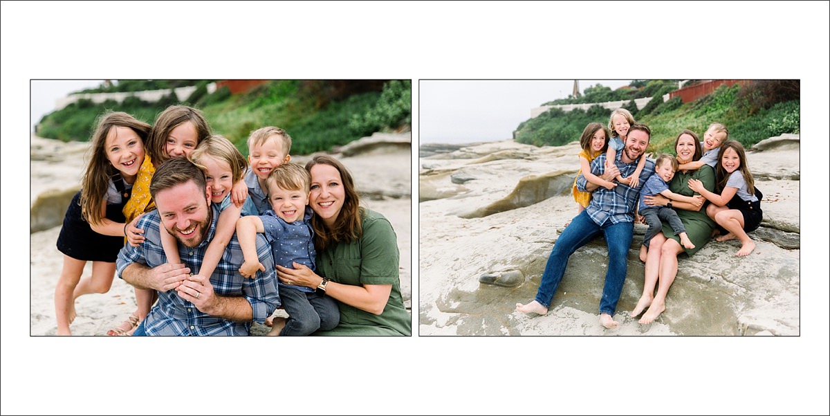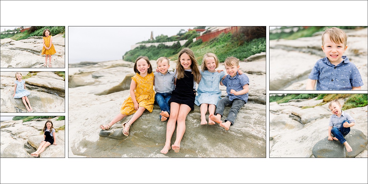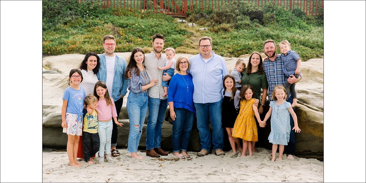 What a crazy-crew! The Watson family came to San Diego for an extended family vacation, gathering the grandparents from Canada & children and grandchildren from Texas, Oklahoma & California. I was so excited to have some fun seeing how this beautiful family has grown. I went to college with the eldest son and his wife was one of my roommates at school. I also photographed the middle son’s wedding – it was my second wedding I ever photographed. So I’ve had some fun history with this family and these couples in front of the camera. They were staying up in Oceanside but came down to Windansea Beach in La Jolla for the portrait session. I love the rocky formations throughout Windansea that give the beach photos a little more texture and depth. Wrangling 9 grandchildren was a crazy-fun task and I’m so happy I got to capture the personalities of each of these kids as well as a few sweet portraits of the parents. Here are some of my favorites from their travel family portrait session in San Diego.